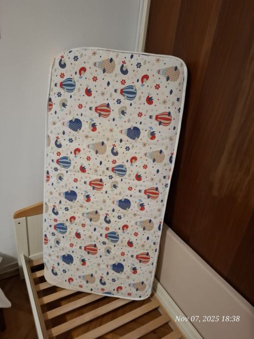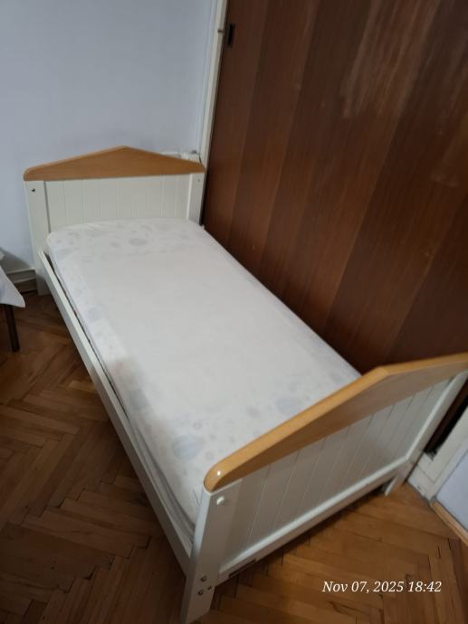 Krevetic za bebe koji se moze presloziti u krevet za dijete. Dolazi uz Hespo madrac i ima podnicu. Ima ostecenje od prejakog sarafljenja. Ima ogradu s obe strane, ali nije na slici. Samo osobno preuzimanje.