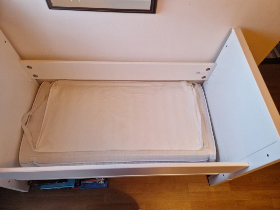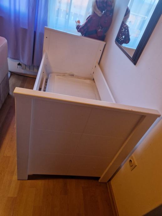 Kinderbet+krevet za dijete do 1,2 razreda osnovne skole koristen jedanputa dijete spavalo u kreveticu,tezina podnice do 55kg max dvije debele stranice za poslije i dvije resetke dok je beba podesiv na 3 razine podnica bez madraca