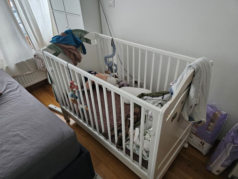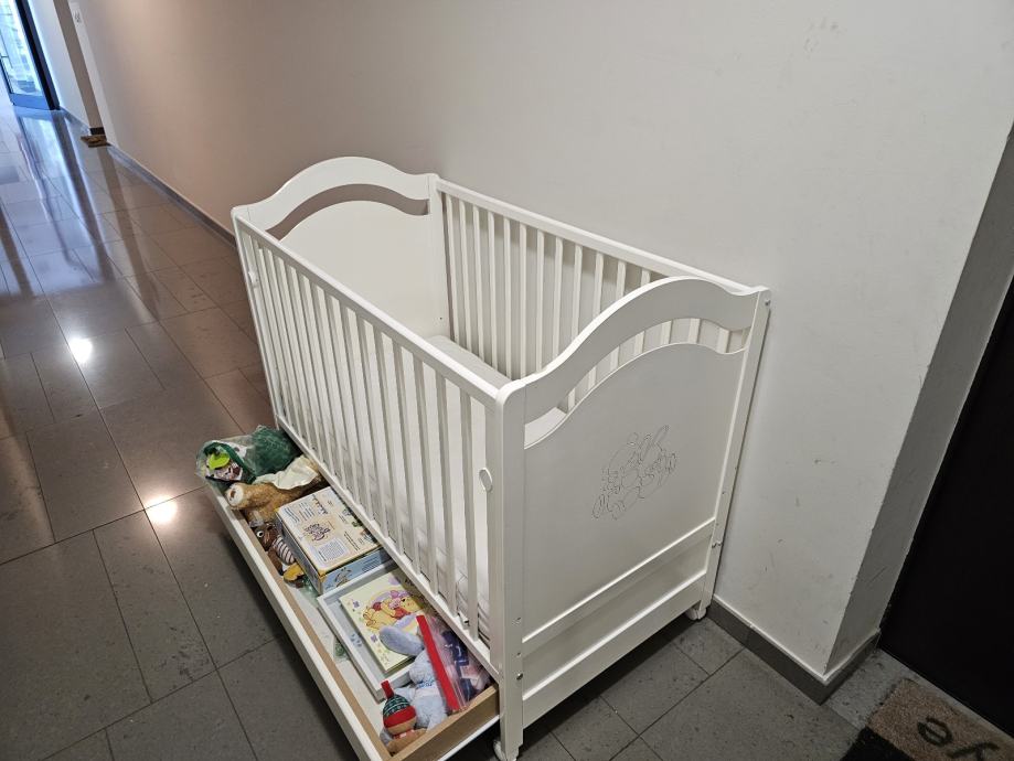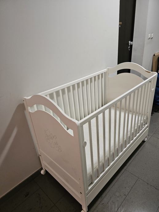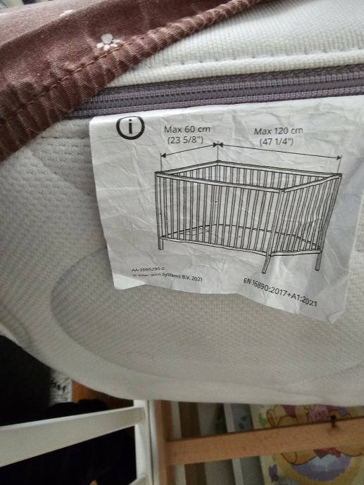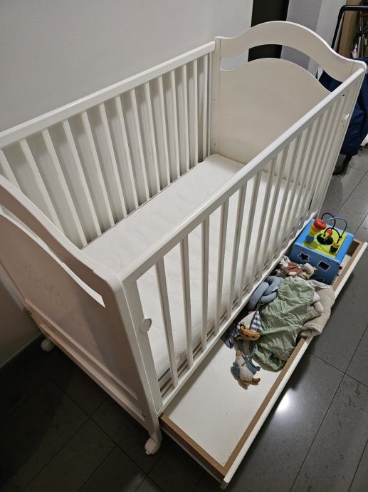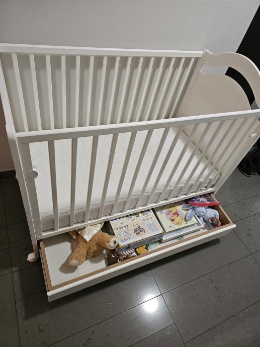 Prodajemo krevetić s kotačima i ladicom te madrac JÄTTETRÖTT (pocket sprung mattress for cot, white, 60x120x11 cm - IKEA Spain https://share.google/2HaZgOR7UVLUzSrKT).