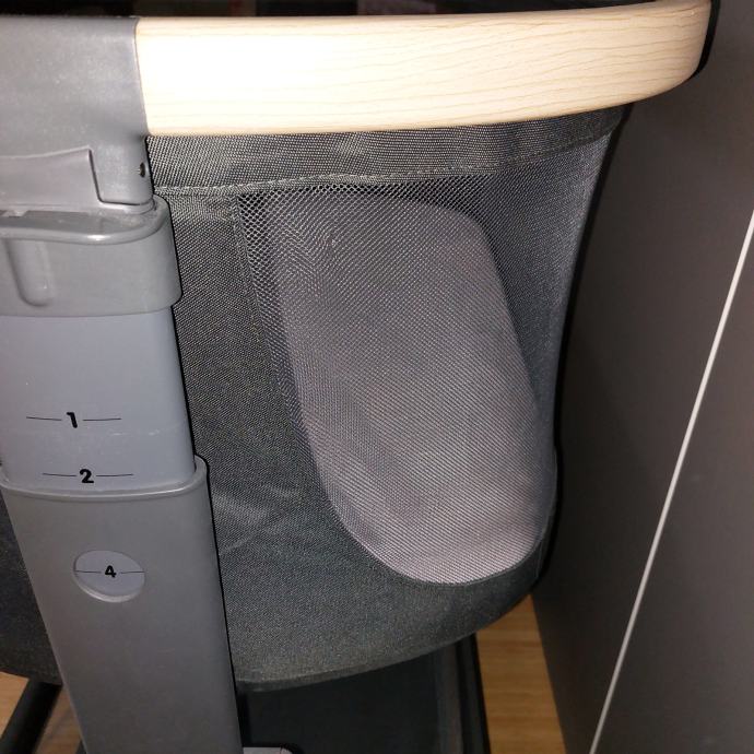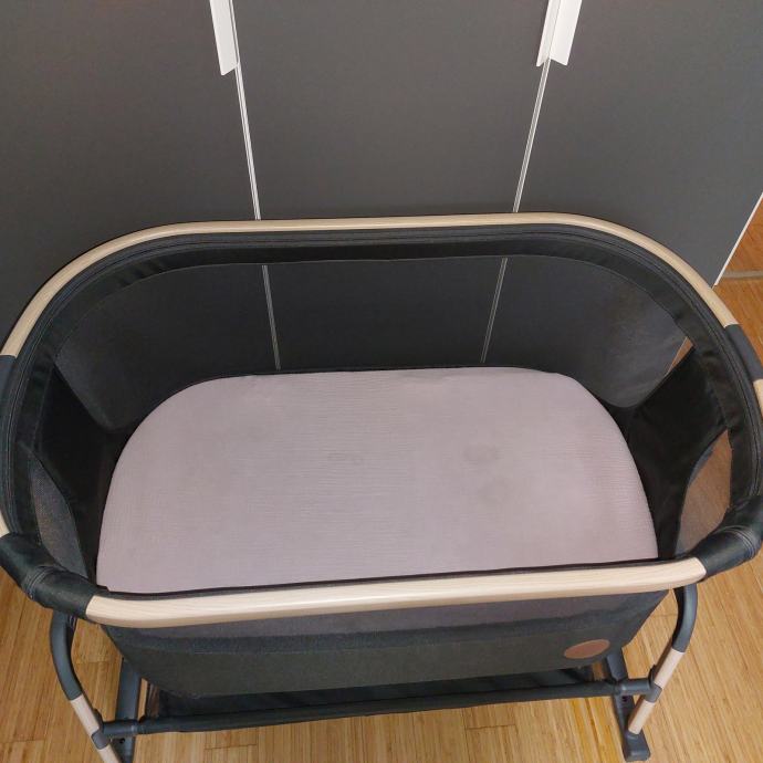 Krevetić "next to me"/putni krevetić s brojnim mogućnostima korištenja. Korišten 8mj, u jako dobrom stanju. Jedino oštećenje je mala rupica na mrežastom dijelu koja je vidljiva na slici (bila je tu čim je kupljen).