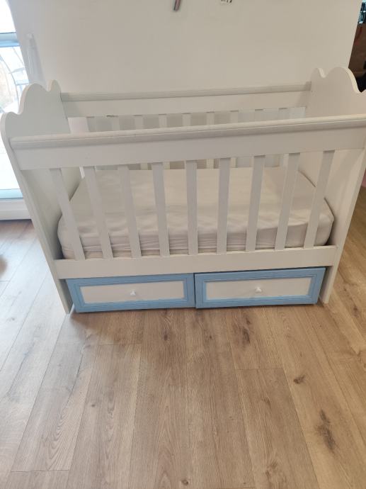 Krevetić u vrlo dobrom stanju,sa dvije ladice, madrac!Madrac 120 cm, krevetić 125cmx65cm