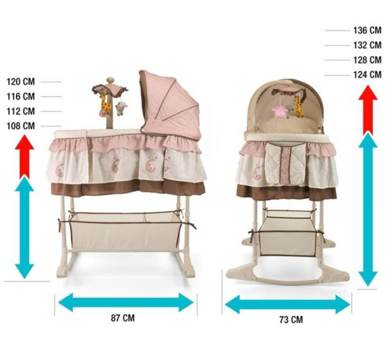 Cradle Sweet Melody je funkcionalna, vrlo dobro opremljena, prijenosna kolijevka za djecu od rođenja do cca. 5 mjeseci starosti.