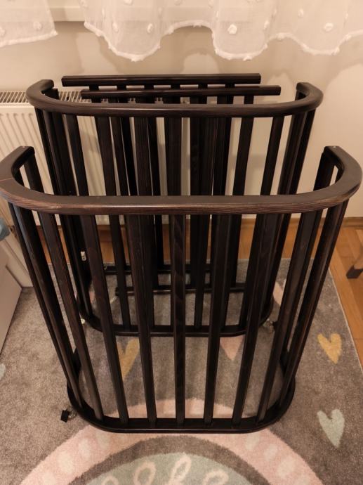 Prodajem Noona Curie cloud kinderbet, ovalni krevetić koji raste s djetetom. Riječ je o multifunkcionalnom krevetiću koji se može prilagođavati kako dijete raste – od kolevke za novorođenče (0-6 mjeseci, dimenzije 66 cm) preko većeg krevetića (0-24 mjeseca, dimenzije 128 cm) do dječjeg kreveta (24-48 mjeseci, dimenzije 126 cm). Krevetić ima elegantne zaobljene linije i okomite letvice, te kotačiće za lakše pomicanje. Dizajn omogućava korištenje kroz prve godine djetetovog života.