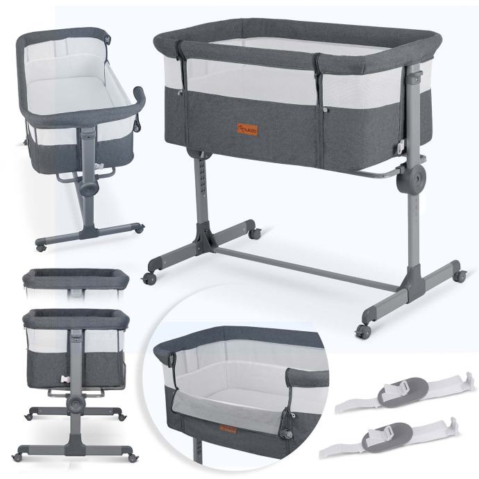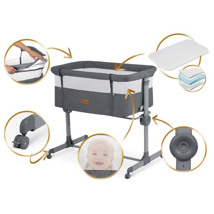 Bočni krevetić omogućuje majci jednostavno hranjenje noću, bez potrebe za ustajanjem i odlaskom u drugu sobu. Podesiva visina omogućuje vam jednostavno prilagođavanje krevetića vašem madracu.