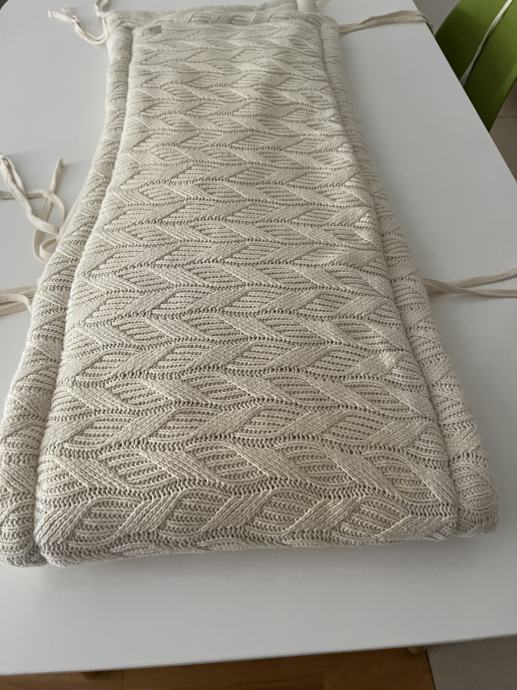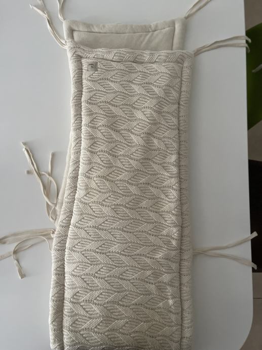 Prodajem pletenu pamučnu ogradicu za krevetić marke Jollein, bež boje, duljine 180 cm, visine 30 cm.