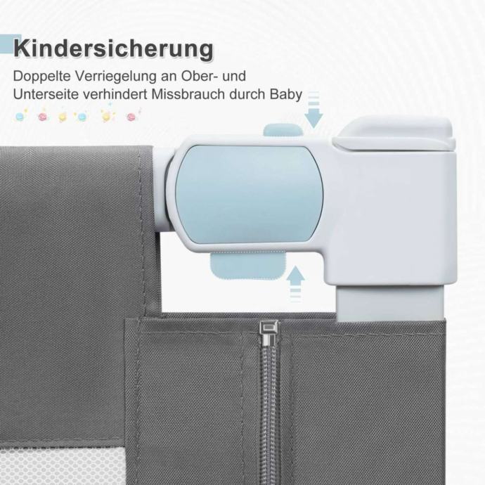 STABILNO I SIGURNO: Zaštita za dječji krevet dizajnirana je kao sigurnosna mjera protiv padova. Nakon sastavljanja, nema razmaka između zaštite i madraca. Zahvaljujući željeznom okviru i L-oblikovanim spojnicama, zaštita je pouzdana.