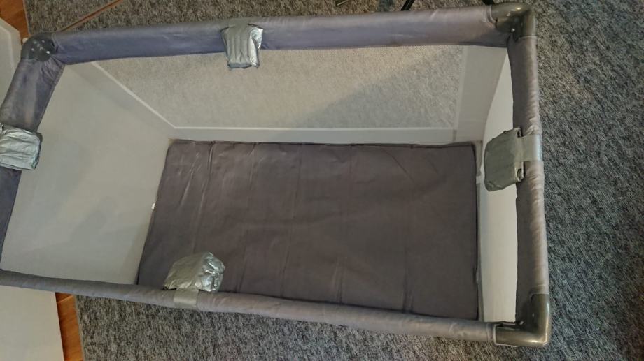 Prodajem prijenosni/sklopivi dječji krevetić zajedno sa sklopivim madracem dimenzija 120x60cm. Oboje je korišteno ali je očuvano. Na krevetiću su na mjestu zglobova dodane ručno rađene zaštite koje krevet originalno nema.