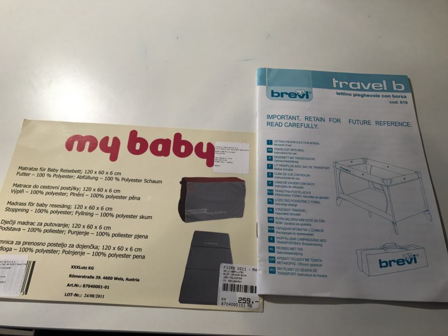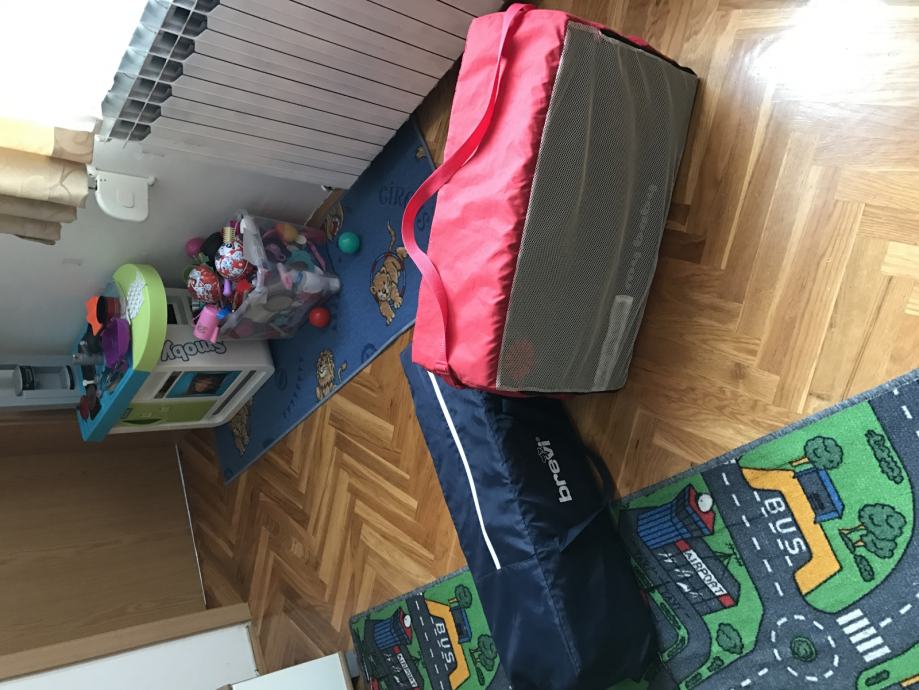 Prodajem putni dječiji krevetić Brevi travel b i sklopivi madrac debljine 6 cm. Dimenzija 120 x 60 cm. Madrac ima navlaku koja se može lako prati.