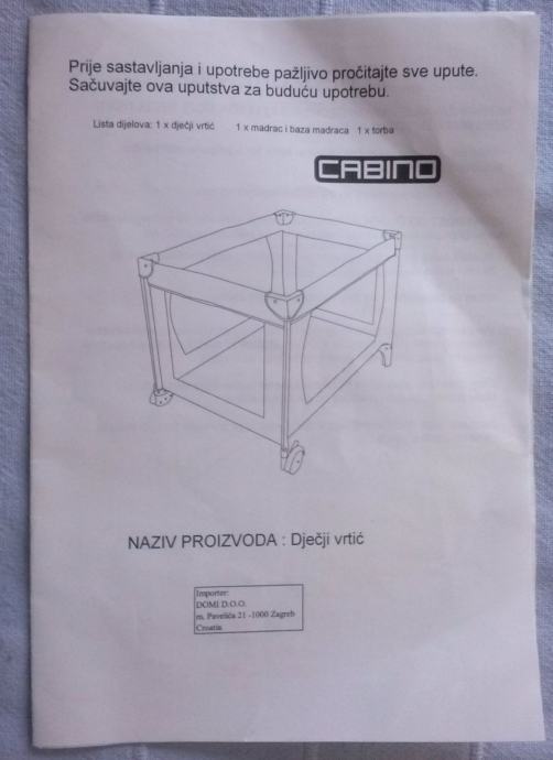 Putni krevetić CABINO sa dodatnim odgovarajućim madracem. Iznimno praktičan. Vrlo jednostavno sastavljanje (u roku od nekoliko minuta). Ima bočni džepić za lakši ulaz djeteta u krevetić.