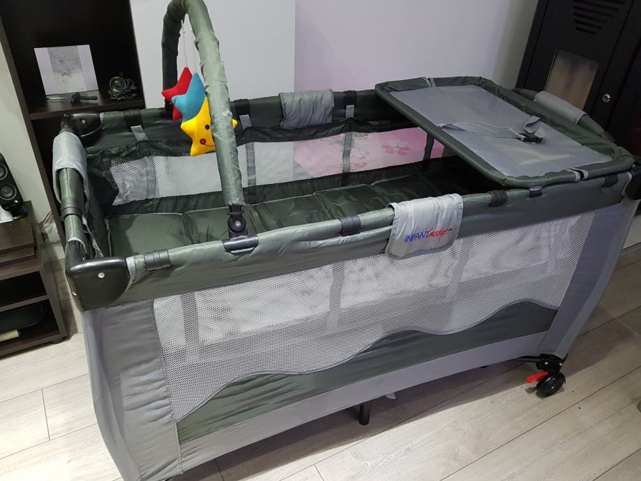 Krevet ima 2 nivoa, za male bebe i kad vec mogu sjediti.