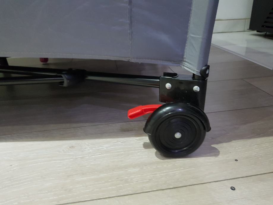 Lako sklopljiv, sa kotačima koji imaju kočnicu.