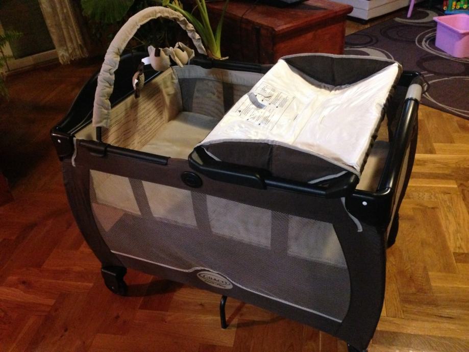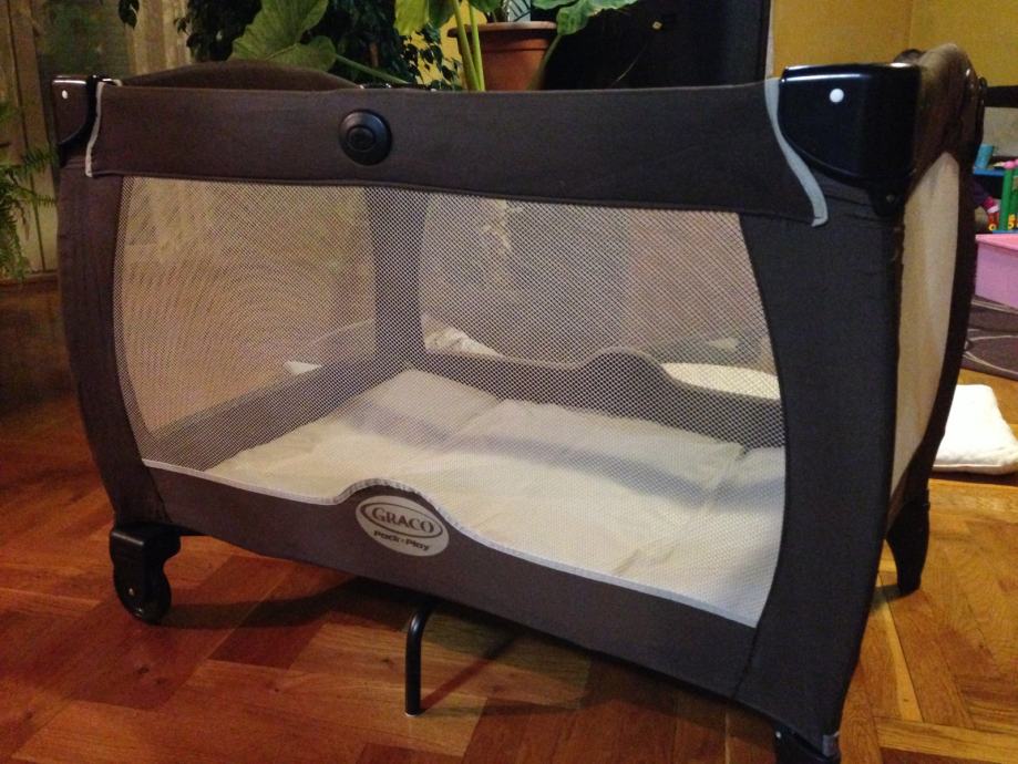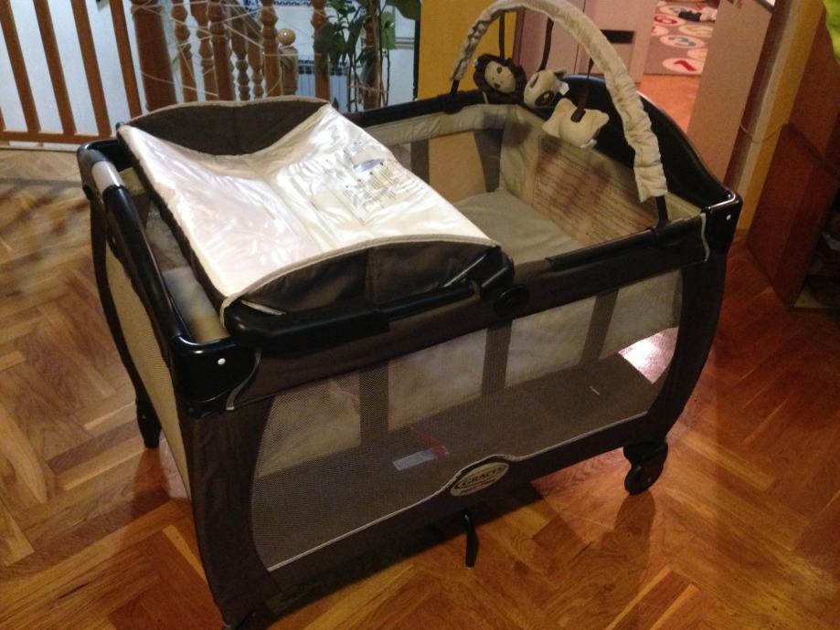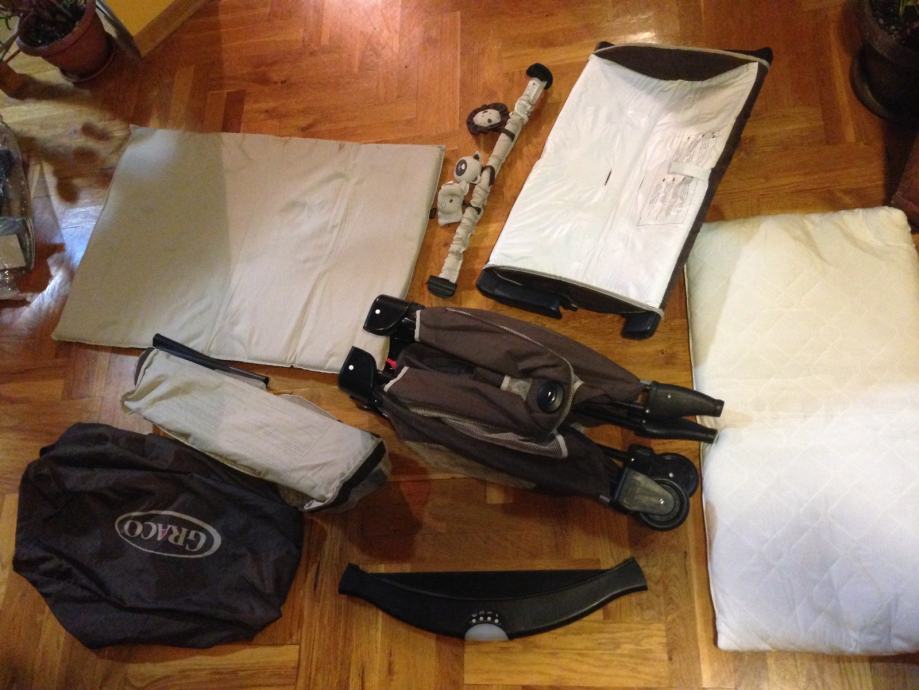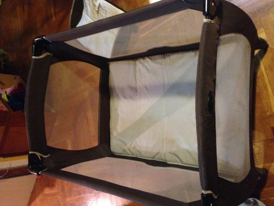 Prodajem putni krevetic Graco kombinacija smede i krem boje, ima dva nivoa, za male bebe do 6 mjeseci, te vece bebe ;), dodatak za presvlacenje, te most sa visecim igrackicama. Cijena je niza jer elektronika ne radi i ima ostecenje na tkanini (vidljivo na slici) no izuzev toga je funkcionalan kao putni krevetic ili vrtic za dijete.