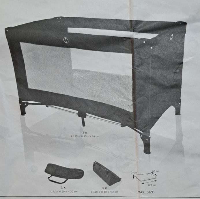 Putni krevetić,ima svoju podlogu i putnu torbu a korišten je svega par puta.