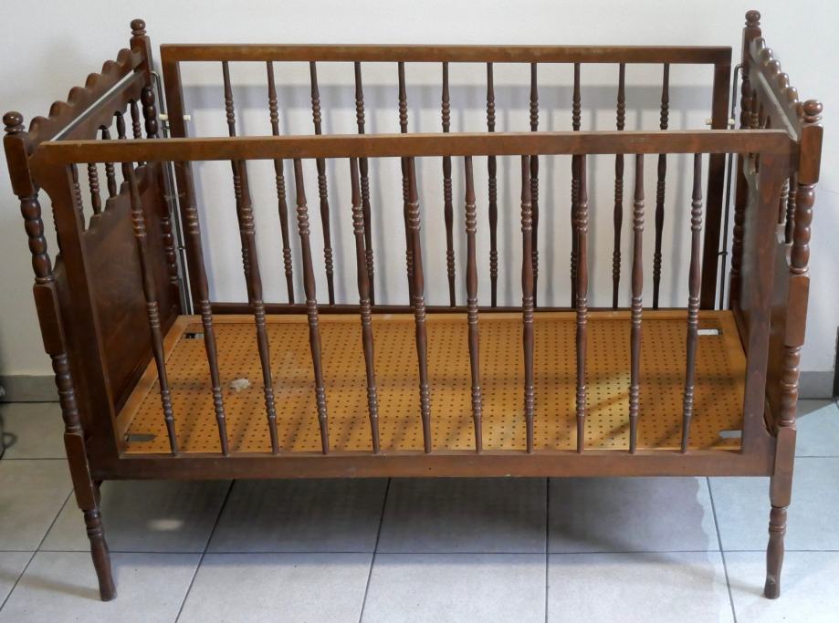 Vintage krevetić ili kinderbet od punog drva.