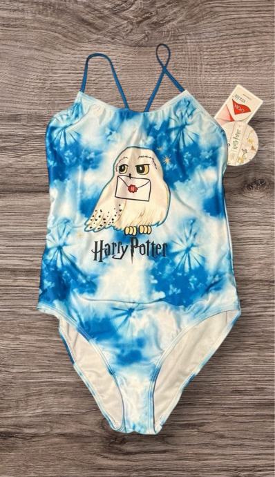 C&A Harry Potter jednodjelni kupaći sova 158, NOVO s etiketom. Presladak kupaći kostim s sovicom s prednje strane, predivna plava boja poput mora, predivan uživo. Deklariran je kao 158/164, ali po meni je možda više kao 158.