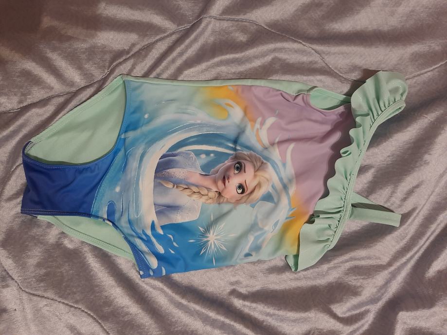 Prekrasan dječji rozi jednodjelni kupaći kostim s printom Frozen. Nošeni kratko. Vel. 110-116