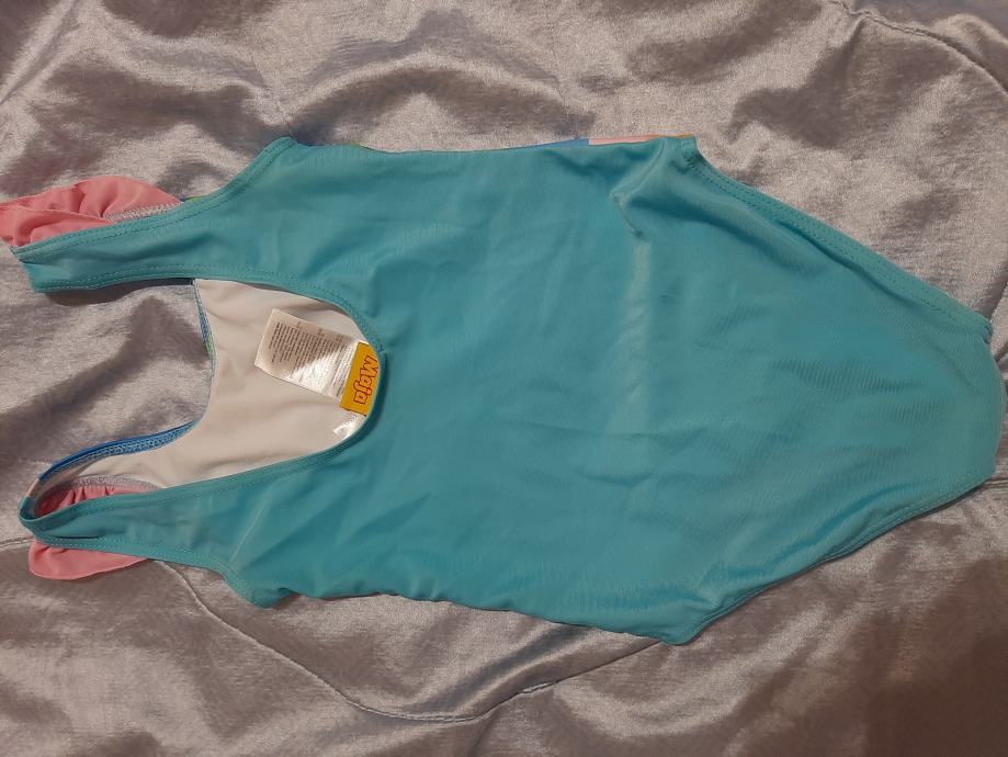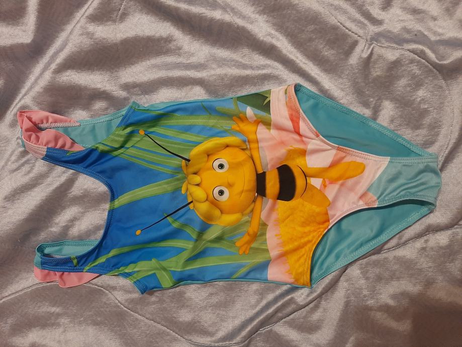 Prekrasan dječji rozi jednodjelni kupaći kostim s printom pčelice Maje. Nošeni kratko. Vel. 110-116