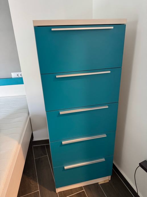 1 x Ormar 219x150x60,5 cm - Komoda 130x50x60 cm- 2 x kreveta 206x96xuzglavlje 7cm sa zastitnim stranicama - 1 nocna polica 40x90x60 cm - 1 x Visoka komoda sa policama 220x 90x 30 cm