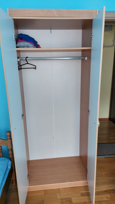 Prodajem izuzetno sačuvani dječji ormar od dva djela. Manji je 0,80x1,82 a drugi za garderobu je 0,80x1,96. Cijena je 400 kuna.