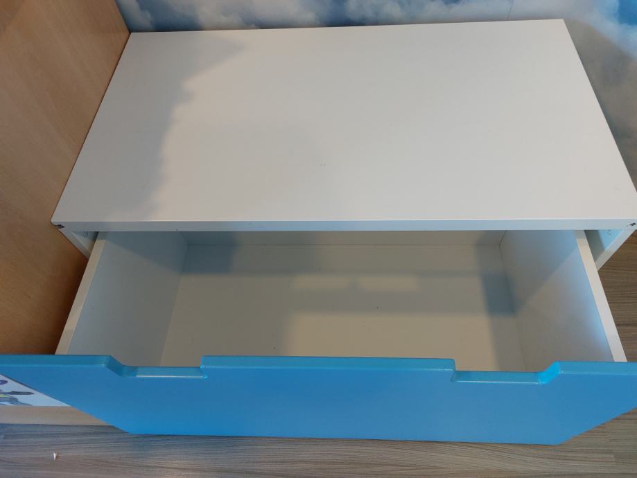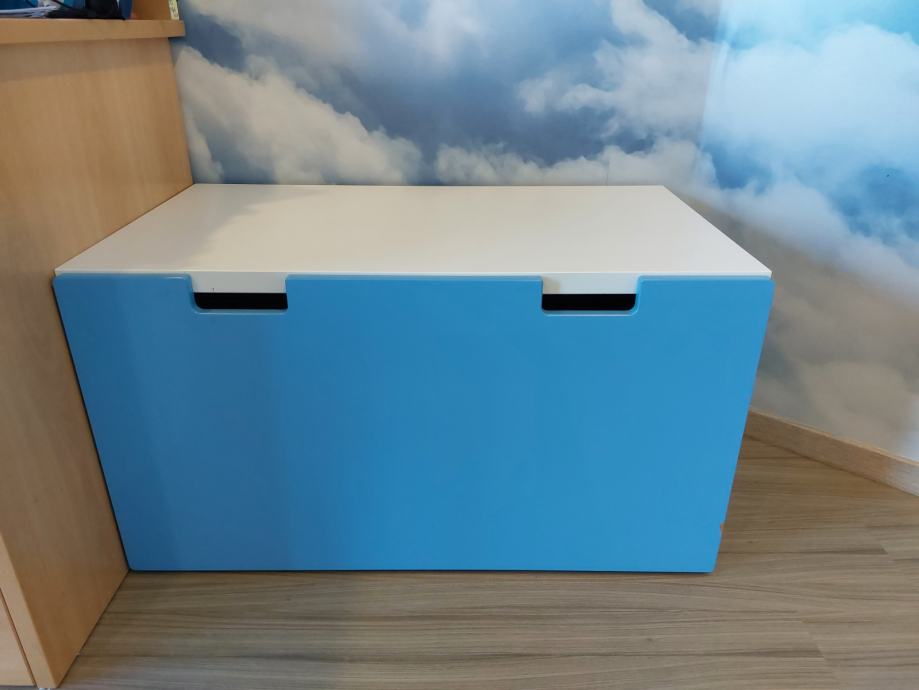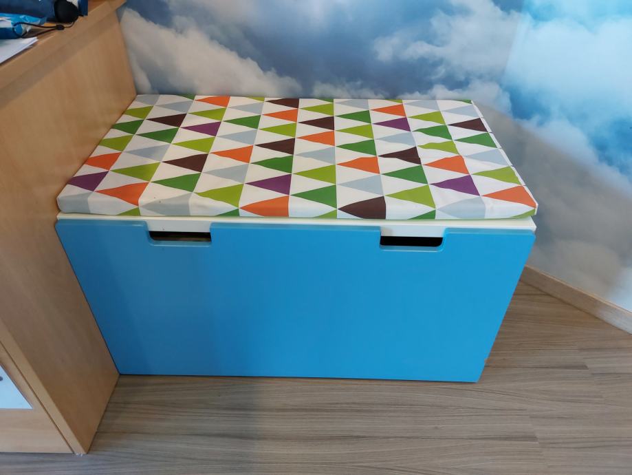 Prodajem sanduk za igračke koji moze poslužiti i kao klupica. Sanduk je dubok te stvarno stane puno igračaka u njega. Klupica je malo otkrhnuta, oštećenje je vidljivo na slikama. Uz klupicu dolazi i jastuk.