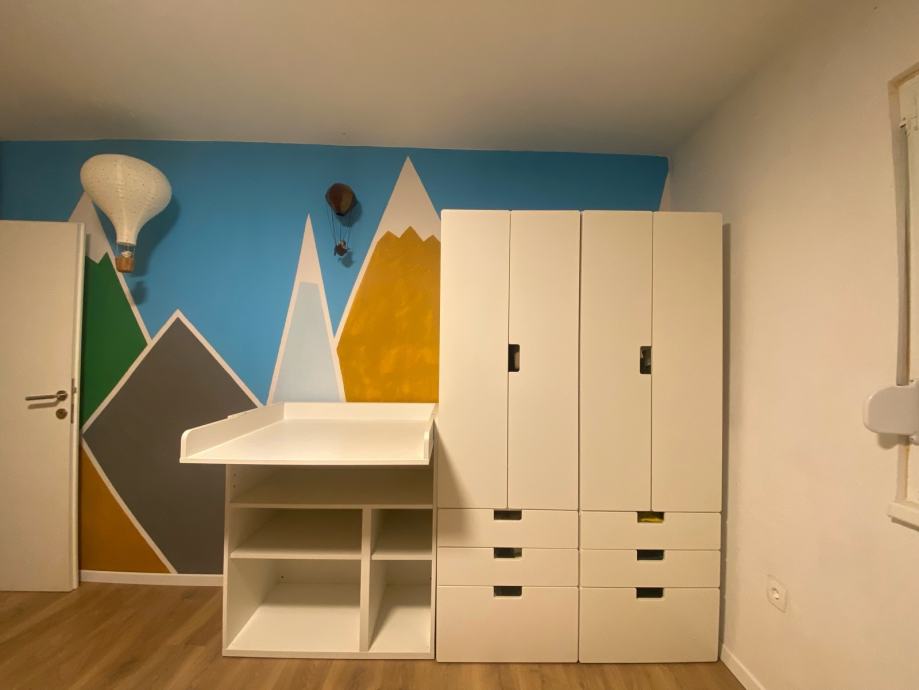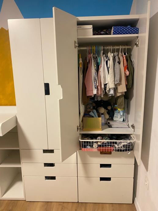 Ormari imaju u gornjem dijelu policu, šipku za vješanje i košaru na izvlačenje. U donjem dijelu su dvije plitke i jedna duboka ladica.