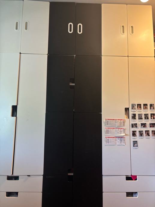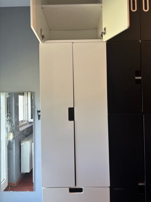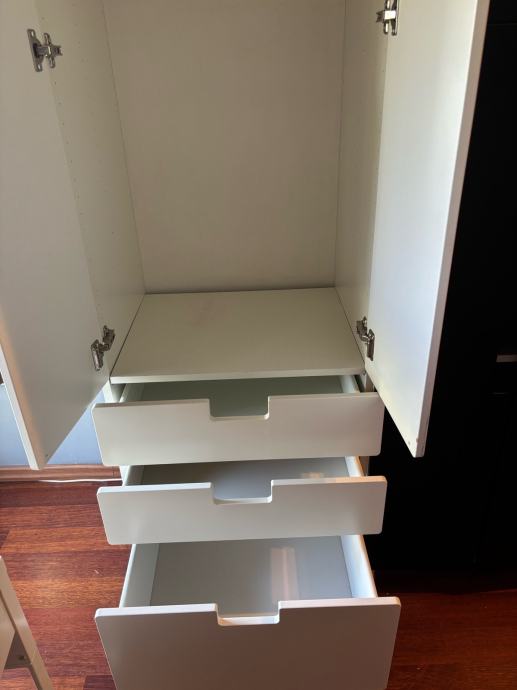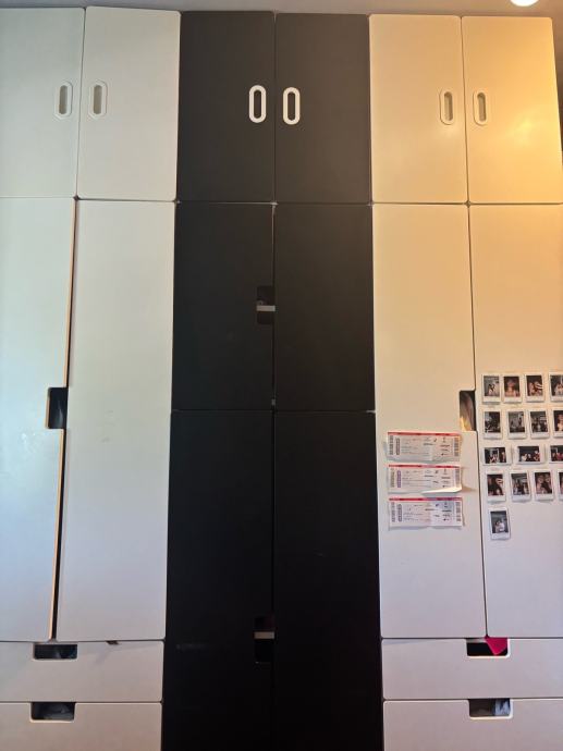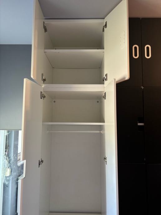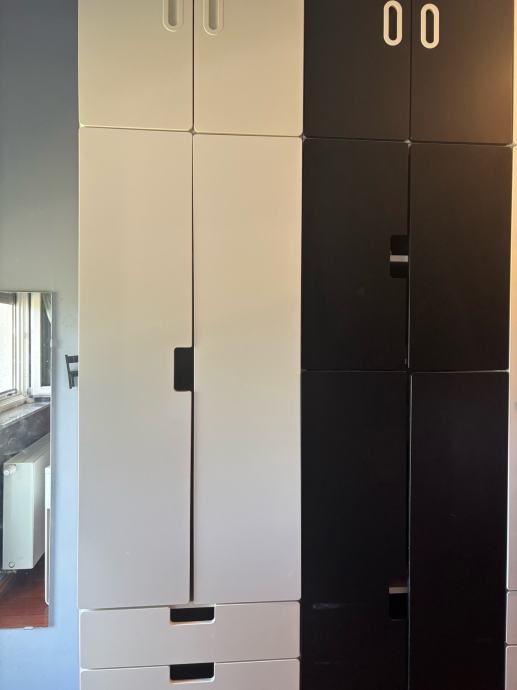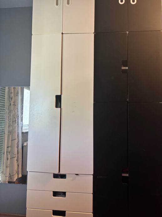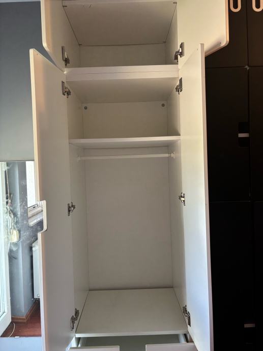 Prodajem 3 ormara stuva dva bijela sa ladicama jedan crni sa policama. Iznad su još tri pojedinačna komada. Ormari su 2,60 visina, 1,80 širina i 51 dubina
