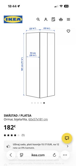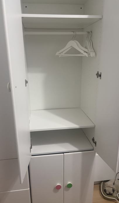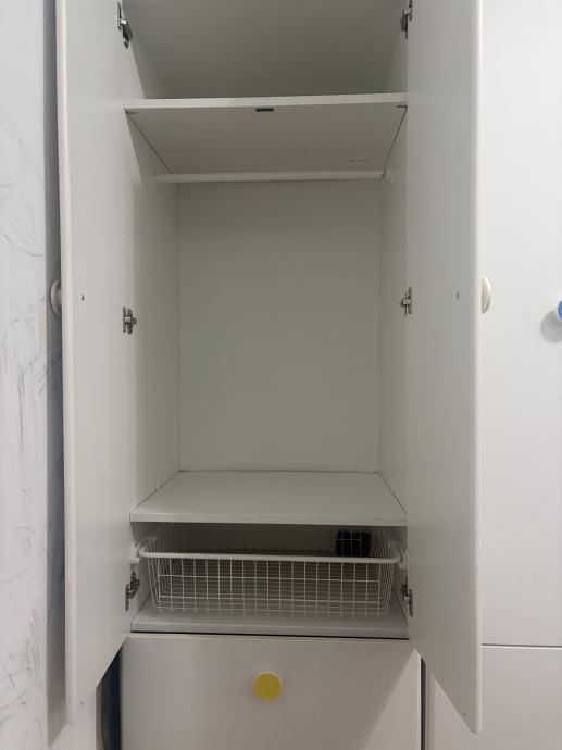 Ormar, 60x57x181 cm. Boje ruckica se mogu mijenjati, s ormarom dolazi set naljepnica. Minimalni tragovi koristenja, jedna manja ogrebotina na gornjem desnom dijelu jednih vrata. Ne nudim uslugu prijevoza, moguce ih je skupiti na Kajzerici. Moguca je i pojedinacna kupnja.