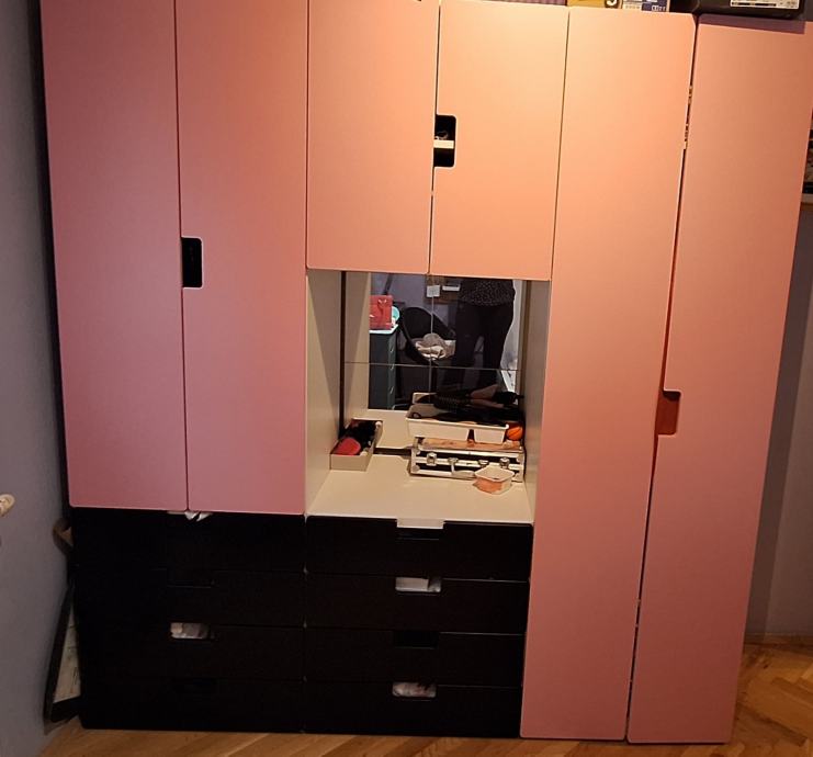 Ikein roza crni blok djecijeg ormara da ladicama dimljene 3×60 cm i visine cca 192 cm