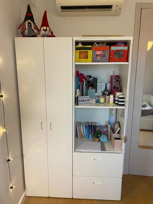 Prodajem IKEA dječji ormar dimenzija š120cm v190cm d50cm, bijelo drvo. Korišten 2 godine, u odličnom stanju. Ormar uključuje dva ladičara i dvije izvlačne košare.