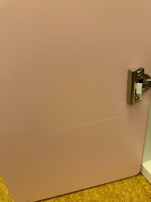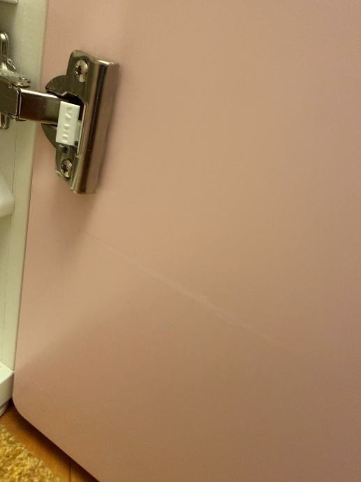 Kod upotrebe jedna malena ogrebotina na vratima s vanjske strane i jedva vidljiva crta od povlačenja ladice s unutarnje strane (sve fotografirano). Treba bolje centrirati vrata (vidi se gore uži a dolje mrvicu širi prostor između vrata).