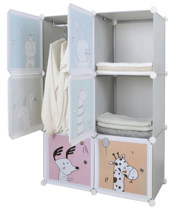 Djecji ormar BIARO, savršen za odlaganje igračaka, odjeće ili knjiga u dječjoj sobi. Modularan je i lagan, izrađen od plastificiranih panela sa šarenim dječjim motivima(životinje). Vrlo jednostavan za montažu i fleksibilan za različite rasporede.