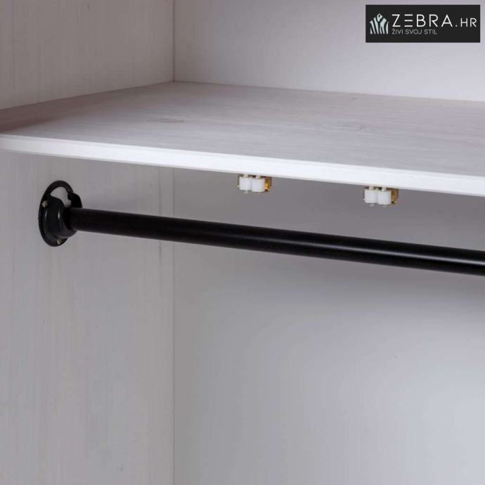 Ormarić za odjeću ima fiksnu policu za spremanje i organiziranje cipela, džempera, traperica, šešira, torbica itd. Veliki pretinac opremljen je šipkom za vješalice tako da ga možete upotrijebiti za vješanje balonera, haljina itd. Napravljen od masivne borovine, ormar je čvrst i osigurava dugotrajnu upotrebu.