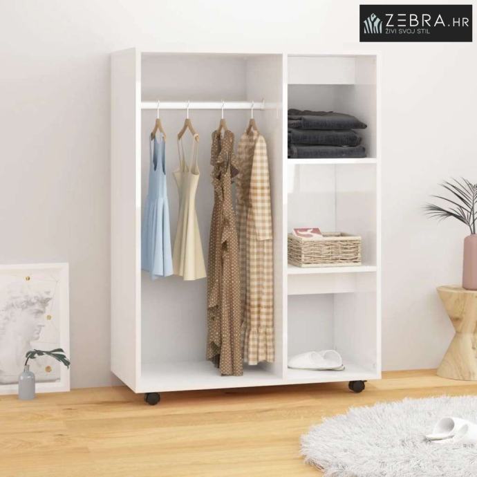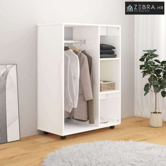 Trebate elegantan i praktičan ormar? Ovaj bijeli visoki sjaj s kotačima je idealan!