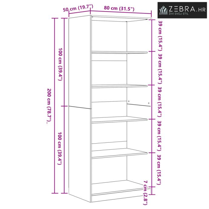 Sveukupne dimenzije: 80 x 50 x 200 cm (D x Š x V)