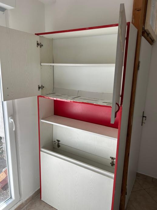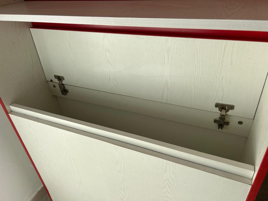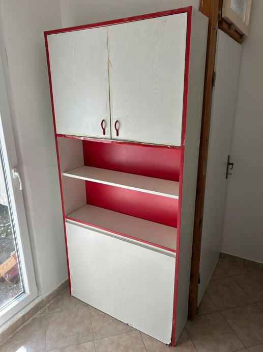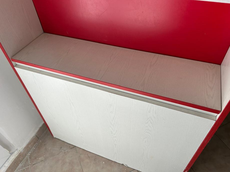 Ormar sa spremnikom za deku, poplun, igračke, crveno,-bijeli, bio u dječjoj sobi. Stanje dobro, očuvan.