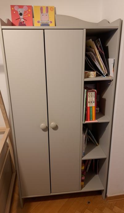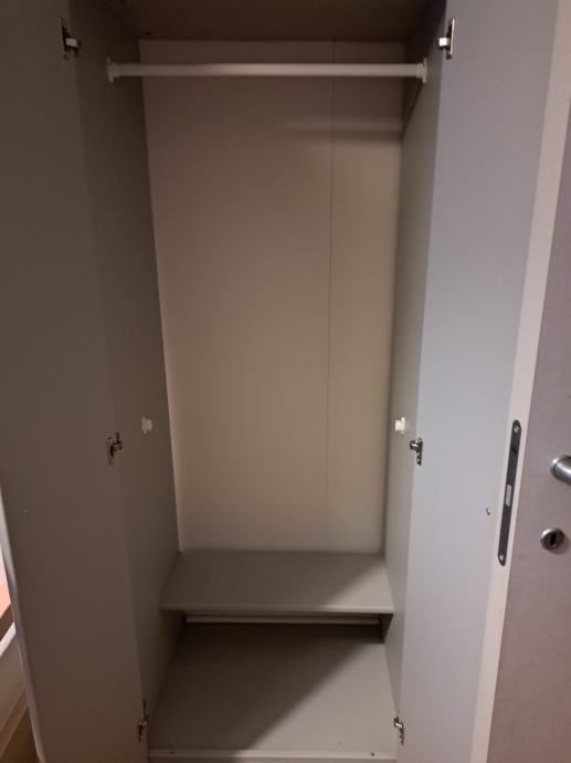 Ormar dimenzija 178/87 cm,ima mogućnost vješalica na dvije razine i na dnu dvije police.Jedan dio ormara su police za odlaganje npr.kniiga.Odlično uščuvan!