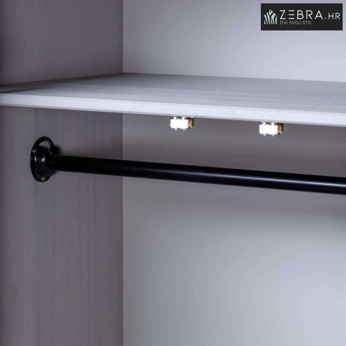 Ormarić za odjeću ima fiksnu policu za spremanje i organiziranje cipela, džempera, traperica, šešira, torbica itd. Veliki pretinac opremljen je šipkom za vješalice tako da ga možete upotrijebiti za vješanje balonera, haljina itd. Napravljen od masivne borovine, ormar je čvrst i osigurava dugotrajnu upotrebu.
