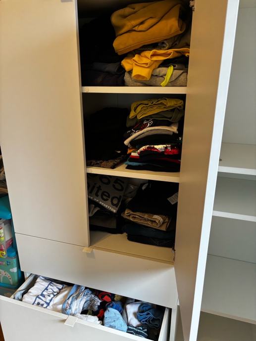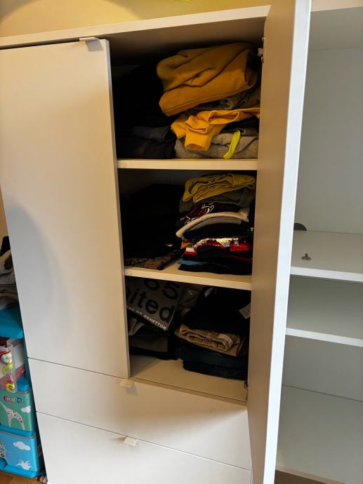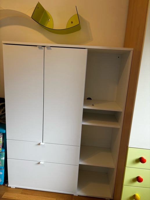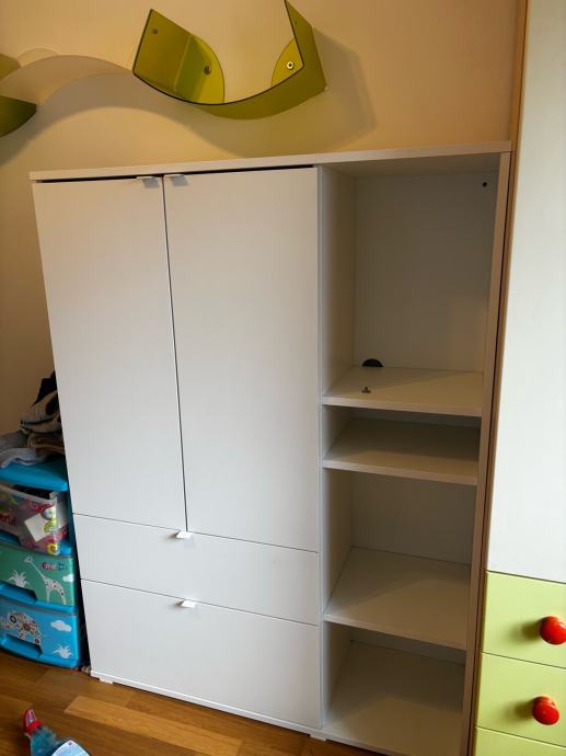 Ormar za odlaganje Ikea, koristeno u djecijoj sobi kao ormara za odjecu. Koristeno 2 godine, ima malo ostecenje ( prikazano na slici) dimenzije su 105*37*140.