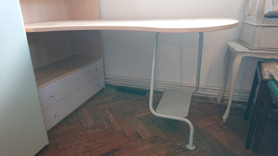 6. Stol + police i ladice - stol dubine 90cm na punom dijelu, duljina 150cm, širina polica 95cm, visina ormara 195cm, dubina polica 34cm