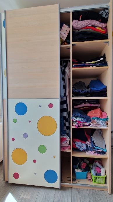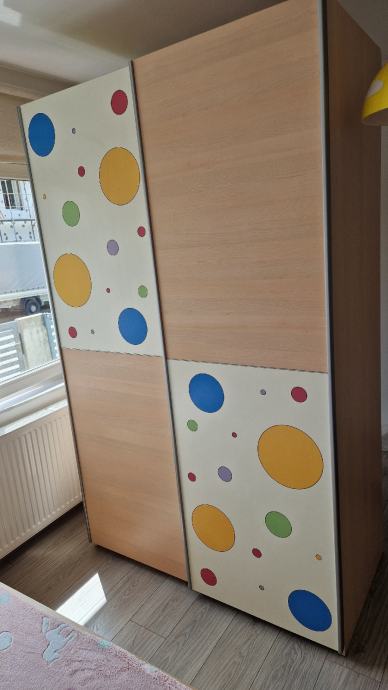 Prodaje se Alples ormar za dječju sobu (VxŠxD 218x133x65) s kliznim vratima. Očuvan.
