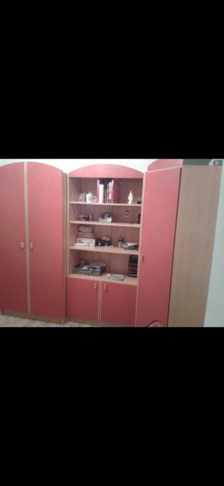 U super stanju crvene boje namještaj za dječju sobu. Trokrilni ormar. Police..