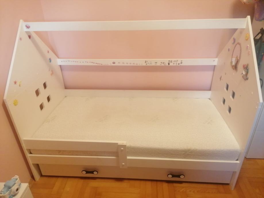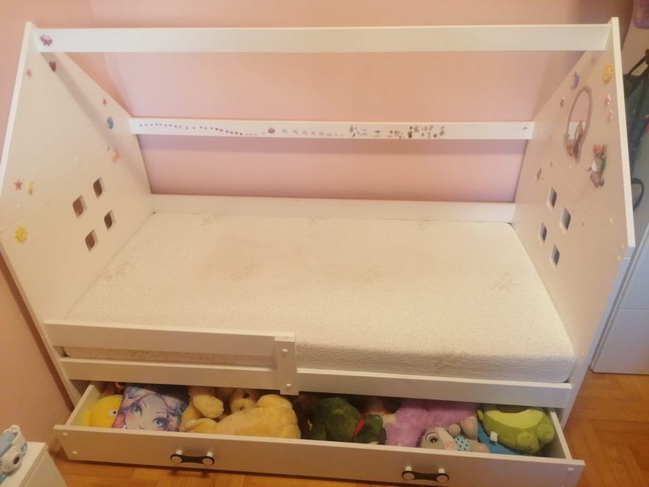 Prodajem očuvani GODISHUS komplet (komoda sa tri ladice i ormar). Cijena kompleta 100 eur. Uz to prodajem i očuvani krevet za djevojčice (madrac gratis) cijena 100 eur. Osobno preuzimanje Zagreb.