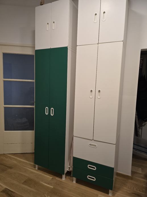 Prodajem ormare sa slike u kompetu. Zeleni ormar je kombinacija vješalice za odjeću, 2 police i 3 košare.