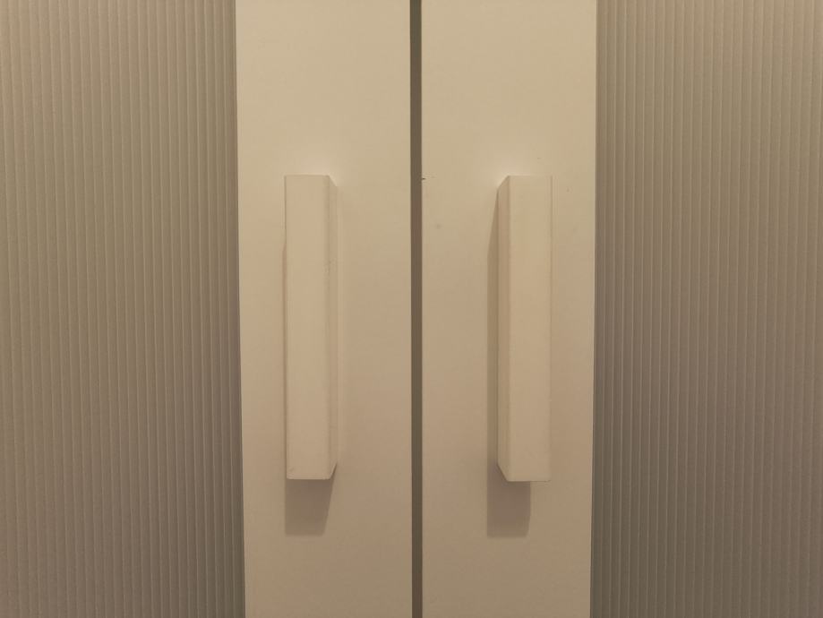 Prodajem samostojeći ormar za dječju sobu ili predsoblje. Bijela boja, fronte s ukladama i ispunom od rebraste plastike.