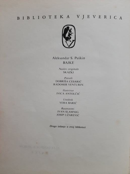 Aleksandar Sergejevič Puškin - Bajke, 1989. Biblioteka Vjeverica