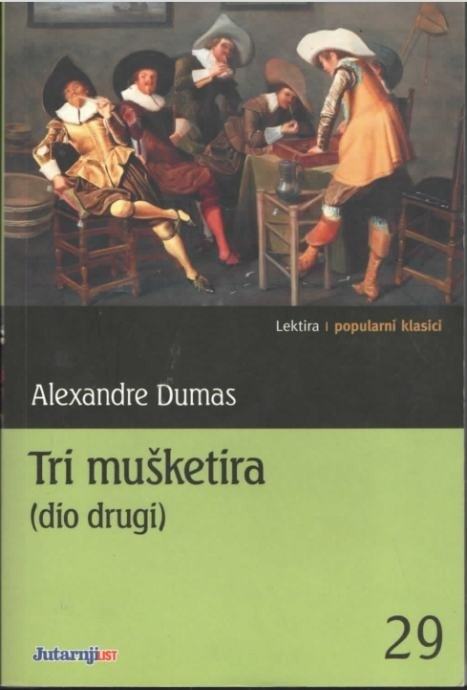 Poznata i popularna priča u dvije knjige o mladom plemiću D´Artagnanu koji polazi put Pariza na svom starom konju, s očevim pismom preporuke za kraljeve mušketire i receptom za čudotvorni lijek za rane. Konja proda i izgubi pismo, ali ga "pod zaštitu" uzimaju prekaljeni mušketiri - Athos, Portos i Aramis. Tu počinju avanture četvorice koji djeluju pod geslom "svi za jednoga, jedan za sve"...Stranica: 330Dimenzije: 20X14Jezik: ZagrebPismo: LatinicaStanje: DobroUvez: MekiGodina: 2005