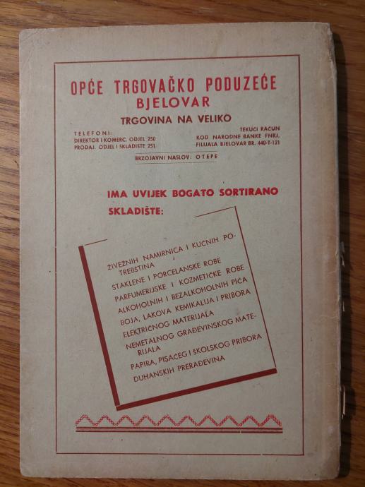 - Tisak : Prosvjeta , Bjelovar , 1954.