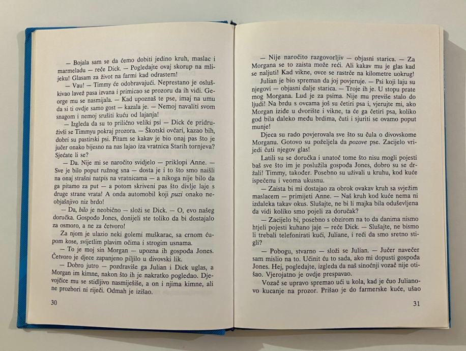Ljetujući na farmi Finniston, petorka upoznaje blizance Harrya i Harrietu i udružuje se s njima protiv neugodnih gostiju – Amerikanca Juniora i njegova oca koji su došli u Englesku da jeftino nakupuju vrijedne starine i potom dobro zarade…