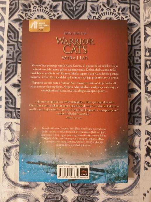 Nova, nečitana knjiga Erin Hunter, serijal Warrior Cats, 2. dio "Vatra i led", prodajem.