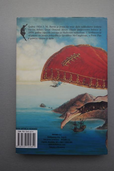 Geraldine McCaughrean - Petar Pan u grimizu, tvrdi uvez, format 23,5x16cm, 121 stranica, nečitano, manji tragovi na vanjskom omotu od stajanja